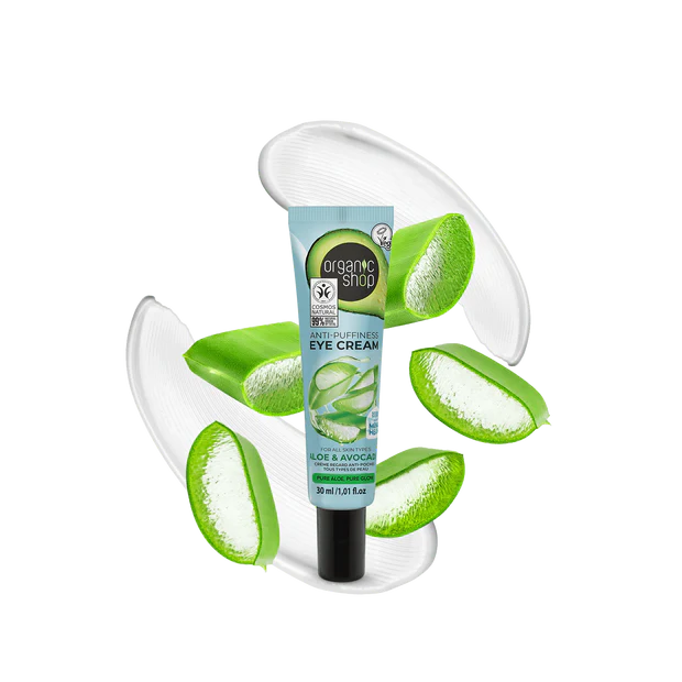 Organic Shop Anti Puffiness Eye Cream Avocado & Aloe er en lett og pleiende øyekrem utviklet for daglig pleie av den sensitive huden rundt øynene. Den bidrar til å redusere synligheten av puffighet og tegn på tretthet, samtidig som huden føles mykere, roligere og mer komfortabel.