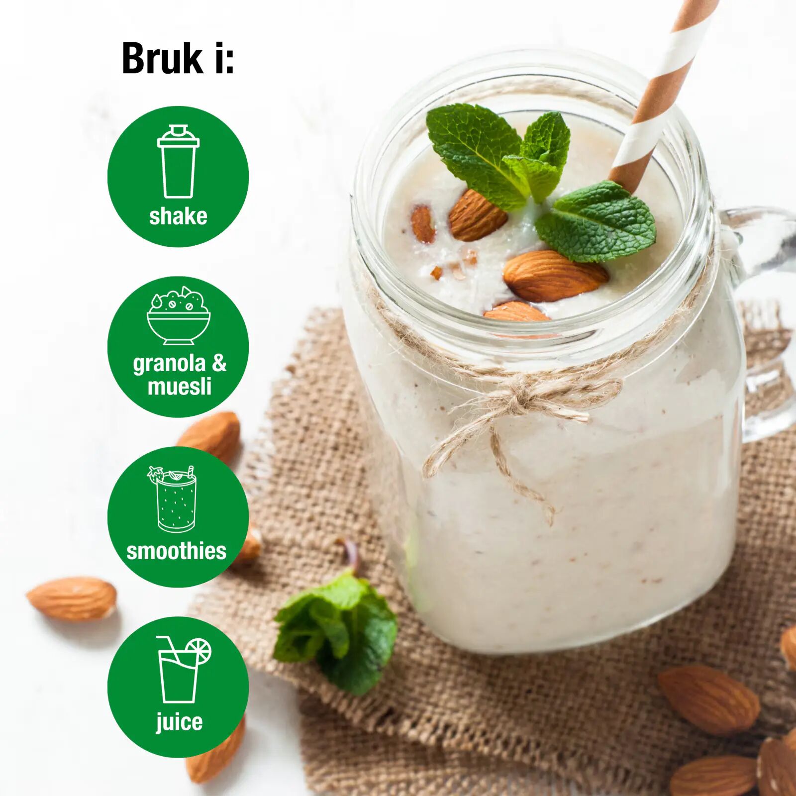 • Bruk ca 3 ts pulver per 300ml valgfri væske, bruk det f.eks. i smoothie, juice eller melk.