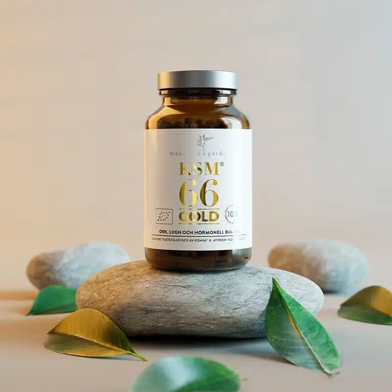 KSM66 Gold er et kosttilskudd basert på ashwagandharot, kombinert med safran og vitamin B6. Ashwagandha og safran har en lang tradisjon innen plantebasert velvære, og brukes ofte av personer som ønsker støtte i perioder med stress, uro og mentalt press. Vitamin B6 bidrar til normal funksjon av nervesystemet og til å regulere hormonell aktivitet.