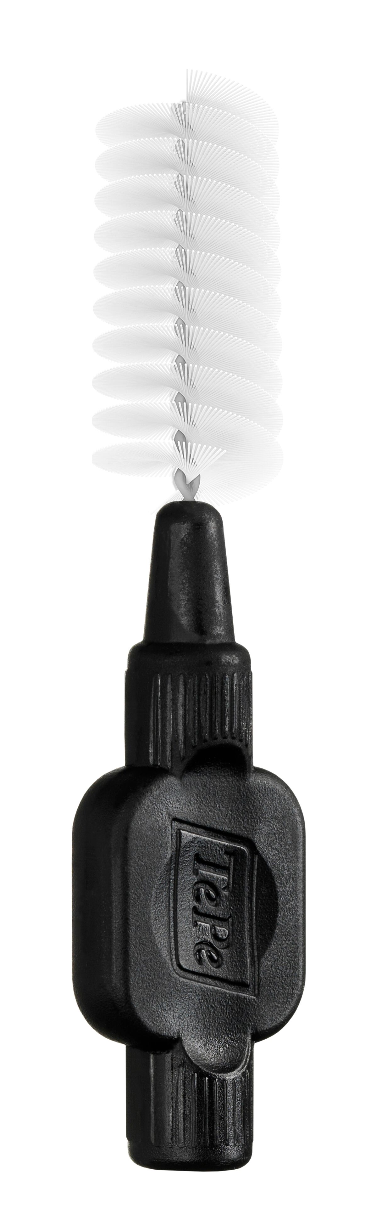 Den svarte fargekoden representerer den største størrelsen i sortimentet. Den er ideell for deg som har betydelige mellomrom mellom tennene, ved tilbaketrukket tannkjøtt, eller for grundig rengjøring under broer og rundt implantater der det er god plass.