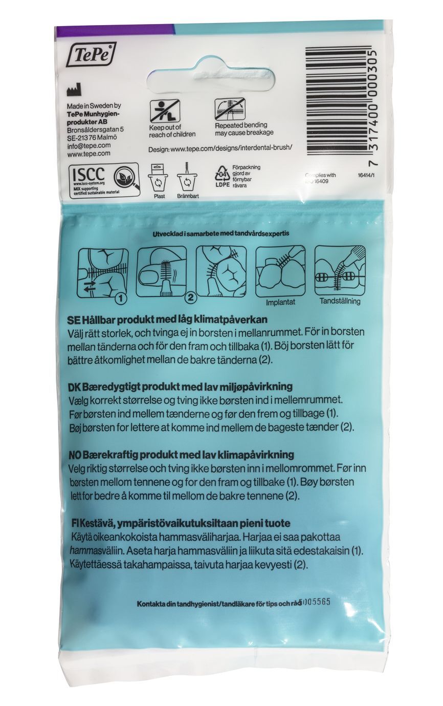 Merk: TePe produserer sine mellomromsbørster i Sverige med fokus på både funksjonalitet og lavest mulig miljøpåvirkning.