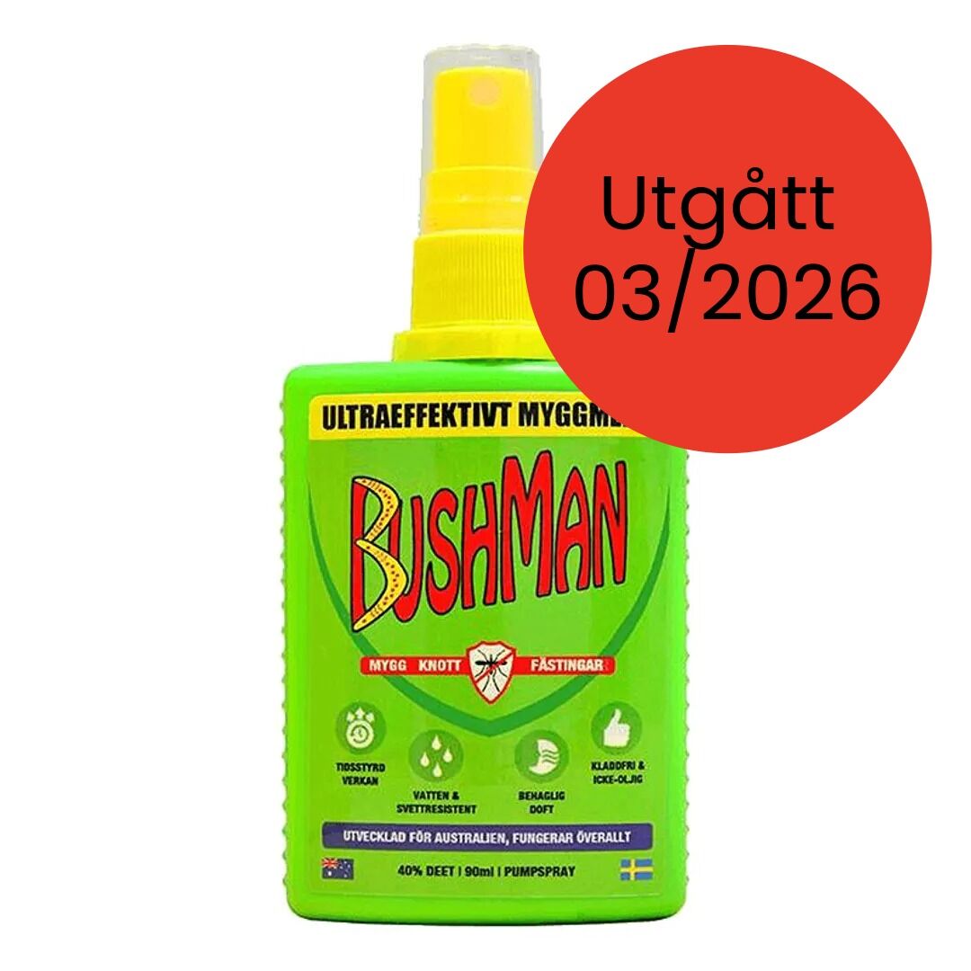 Bushman er kjent for sin langvarige effekt og gir opptil 10 timers beskyttelse etter én påføring. Siden den er svettebestandig, holder den seg effektiv selv under høy aktivitet eller i fuktig klima.