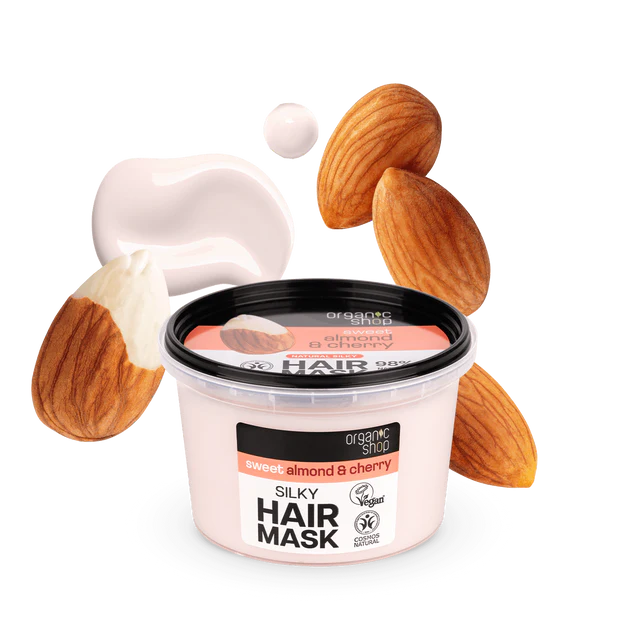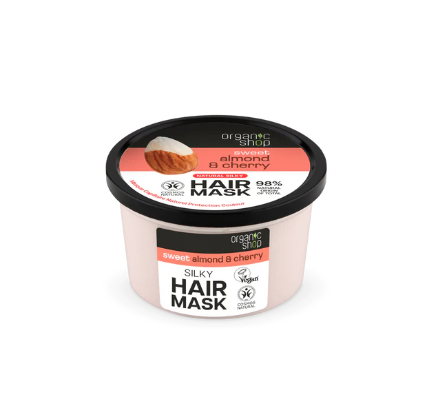 Organic Shop Almond & Cherry Hair Mask er en mykgjørende hårkur utviklet for deg som ønsker ekstra pleie og næring i hårpleierutinen. Den kremede konsistensen fordeler seg lett i håret og gir en behagelig behandling som etterlater håret mykere, glattere og mer velpleid.