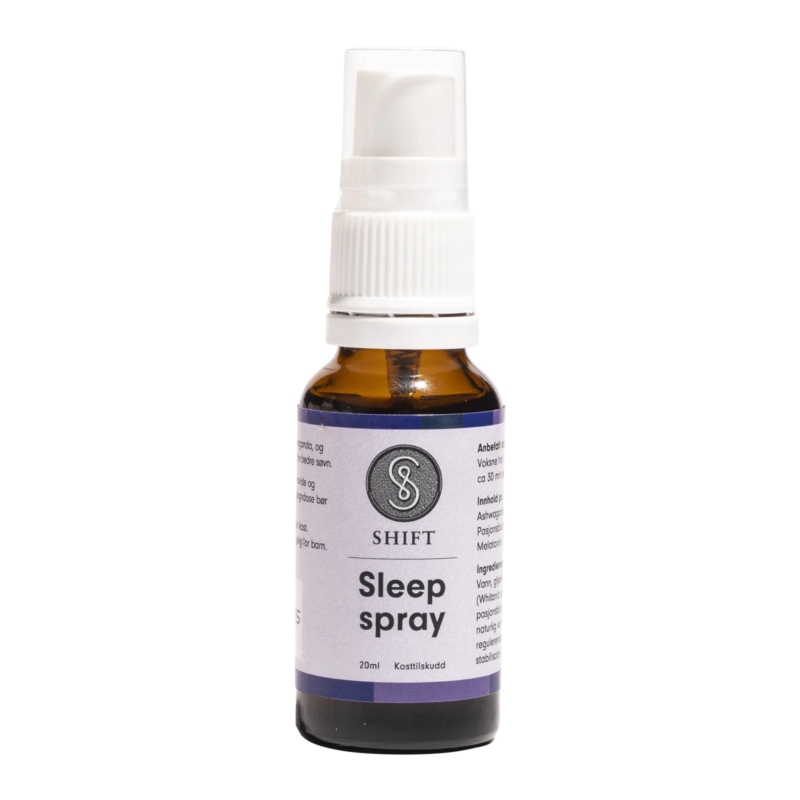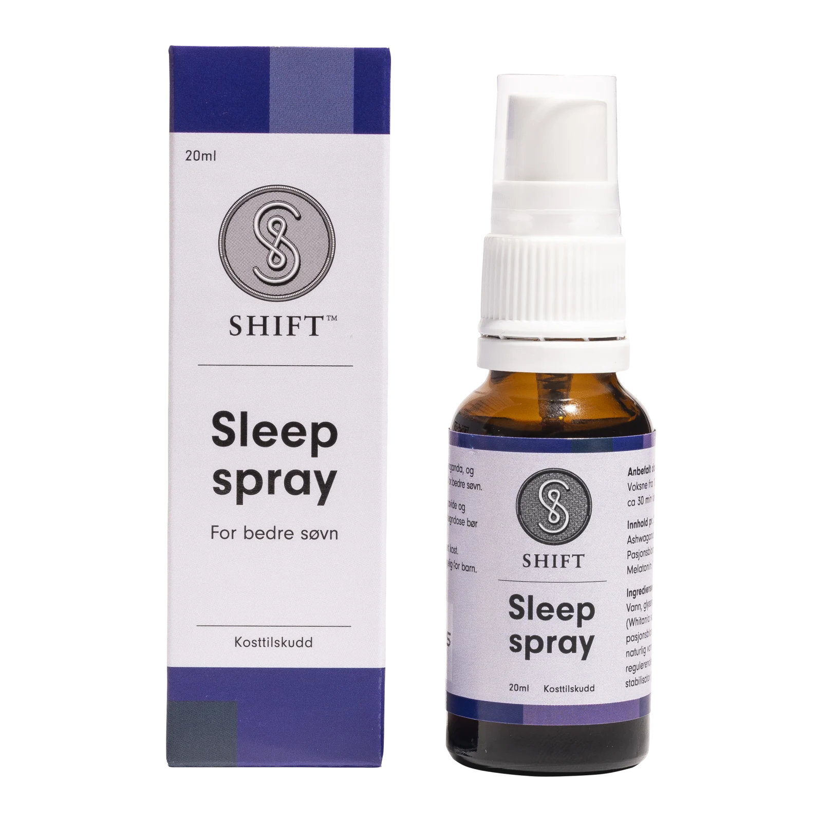 SHIFT™ Sleep Spray er et kosttilskudd utviklet for deg som ønsker en praktisk og naturlig støtte til søvn og ro før leggetid. Sprayen inneholder melatonin, ashwagandha og pasjonsblomstekstrakt – ingredienser som tradisjonelt brukes for å bidra til lettere innsovning og en naturlig følelse av avslapning. Produktet sprayes direkte i munnen, og de aktive stoffene tas raskt opp gjennom munnslimhinnen.