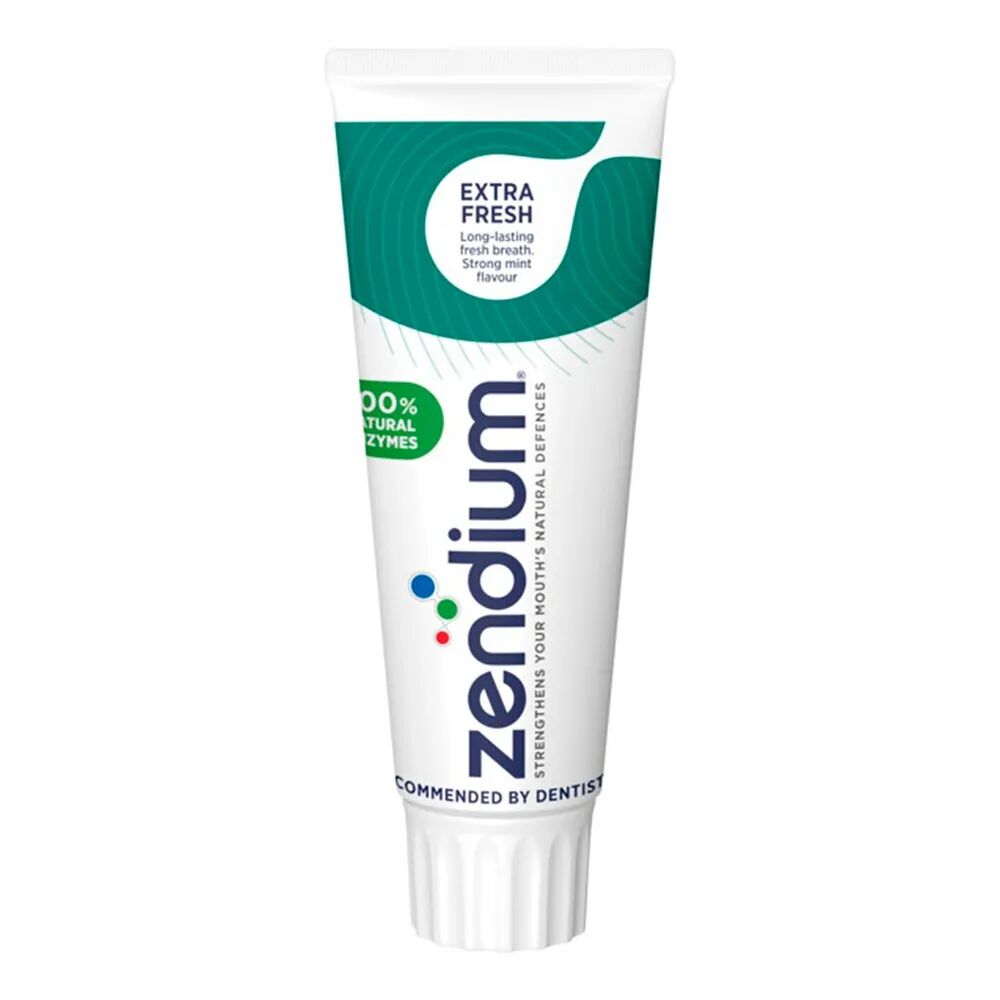 Zendium Extra Fresh er spesialutviklet for deg som ønsker en ekstra oppkvikkende start på dagen og en naturlig frisk pust som varer i opptil 12 timer. I motsetning til vanlige tannkremer som kun maskerer lukt, inneholder Zendium Extra Fresh sink. Dette mineralet nøytraliserer aktivt stoffene som forårsaker dårlig ånde, samtidig som tannkremens unike enzym- og proteinsystem styrker munnens eget naturlige forsvar.