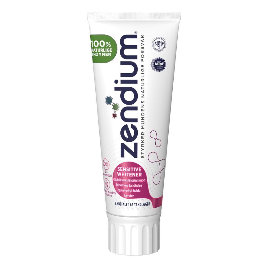 Zendium Sensitive er spesialutviklet for deg som opplever ubehag eller ising i tennene på grunn av følsomme tannhalser. Tannkremen inneholder kaliumnitrat, en veldokumentert ingrediens som bidrar til å berolige nervene i tennene og gir rask lindring. Samtidig hjelper den til med å bevare tennenes naturlige hvithet gjennom en mild og skånsom rengjøring som ikke skader emaljen.