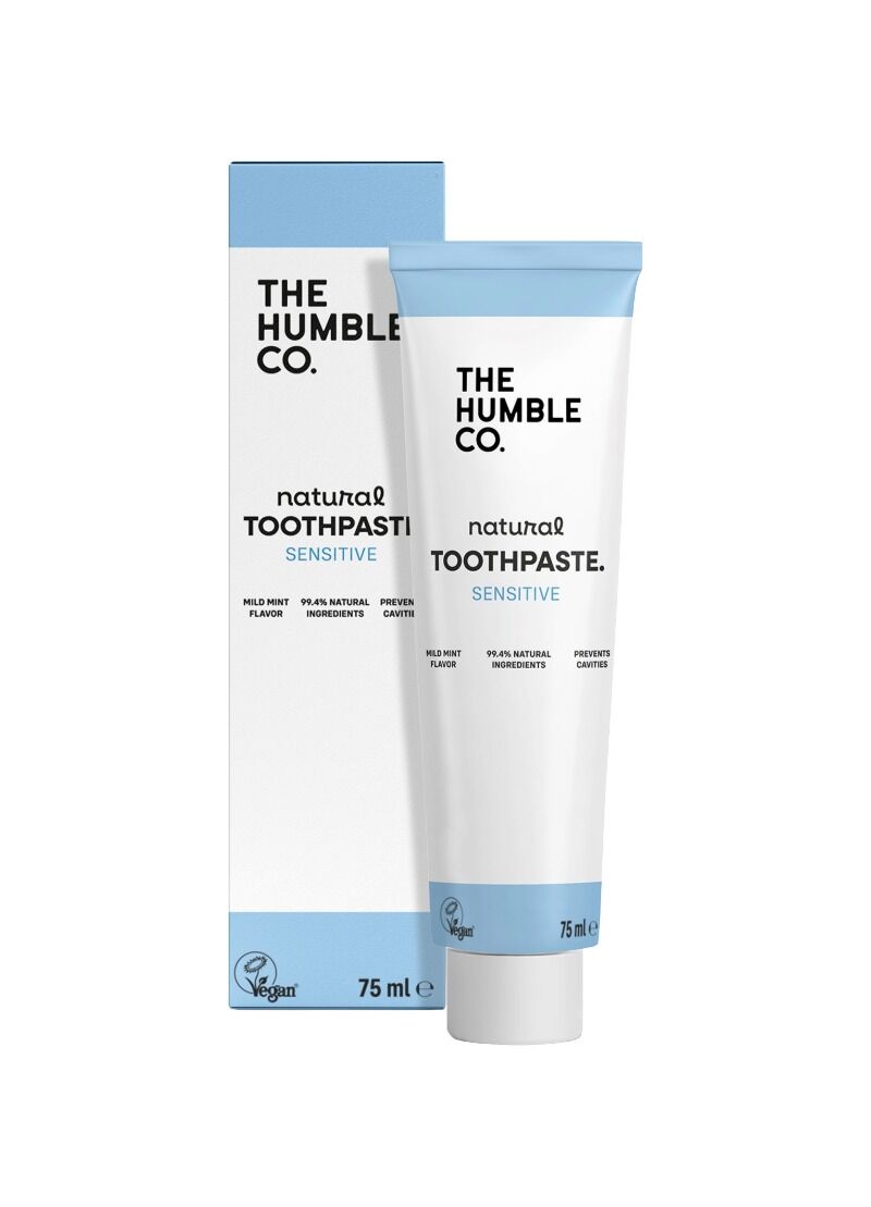 Humble Natural Toothpaste Sensitive Mint er en fluortannkrem utviklet spesielt for sensitive tenner. Den kombinerer 1450 ppm fluor med hydroksyapatitt for å styrke emaljen, forebygge karies og lindre ising, samtidig som den er skånsom ved daglig bruk.