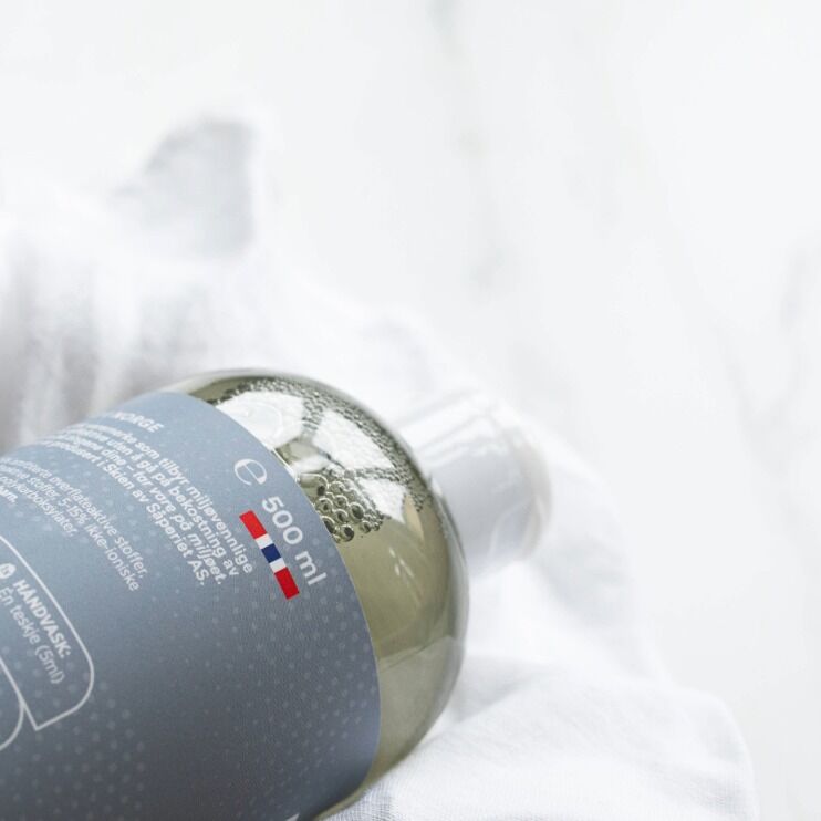En flaske rekker til 33 vask, og flasken er laget av 100 prosent resirkulert plast. Produktet er produsert i Norge og miljøsertifisert av Ecocert Greenlife i henhold til ECOCERT Ecodetergent standard.